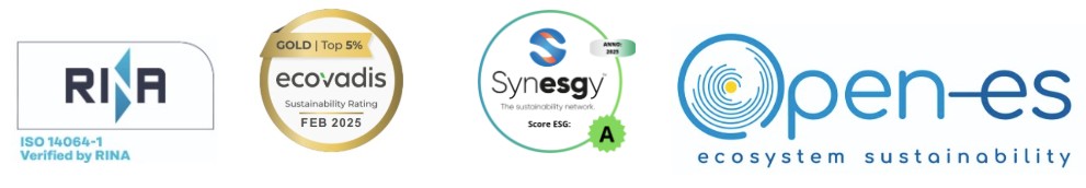 L’Organizzazione ha ottenuto nuovamente il Certificato di Sustainability Rating EcoVadis 2025 – Gold Top 5%, la Open-Es Card, lo score ESG di Synesgy e ha deciso di sottoporre a verifica ISO 14064-1:2018 il proprio inventario delle emissioni in atmosfera.